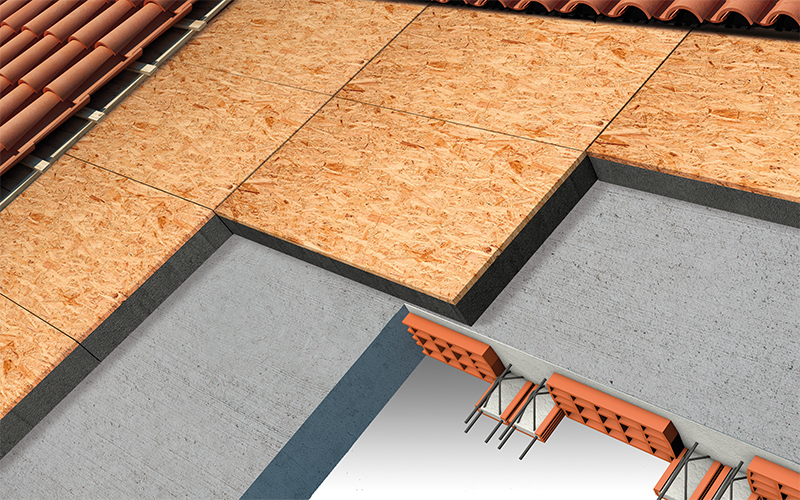 Pannelli in EPS grafitato Neopor® di BASF e strato in OSB ideali per l’isolamento termico di coperture a falda inclinata e del solaio nei sottotetti.