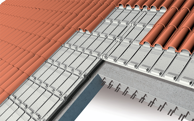 La realizzazione di un tetto ventilato, detto anche tetto freddo, con ISOLROOF TEGOLE garantisce nel periodo invernale un ottimo isolamento termico delle coperture con un notevole risparmio energetico. In estate lo spessore isolante e la ventilazione permettono un raffrescamento del sottostante corpo del fabbricato, realizzando un sottotetto abitabile.