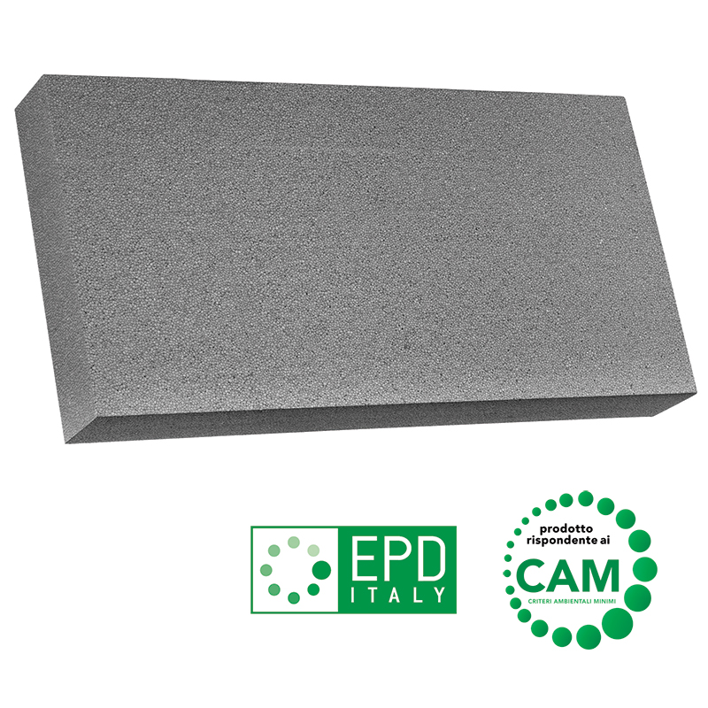 Prodotto a marcatura CE e ETICS, certificato EPD e disponibile con conformità ai CAM. Norma di riferimento UNI EN 13163 e UNI EN13499.