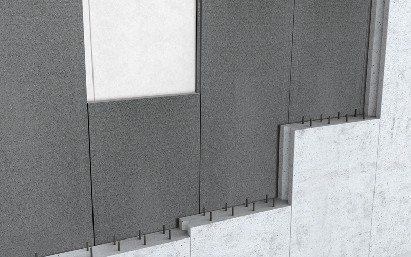 - Isolamento in controplaccaggio su parete in calcestruzzo prefabbricato