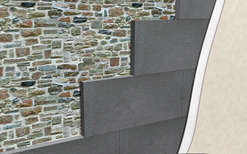 - Isolamento a cappotto su parete in pietra