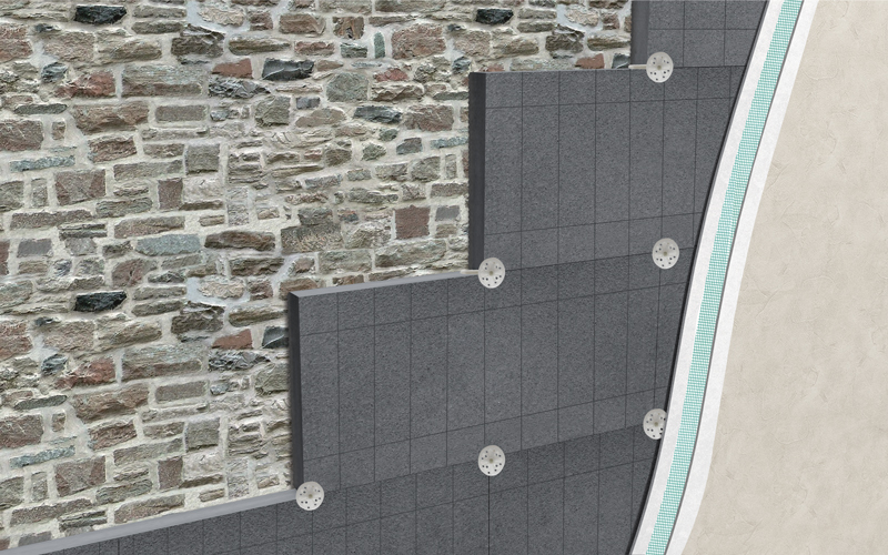 - Isolamento a cappotto su parete in pietra